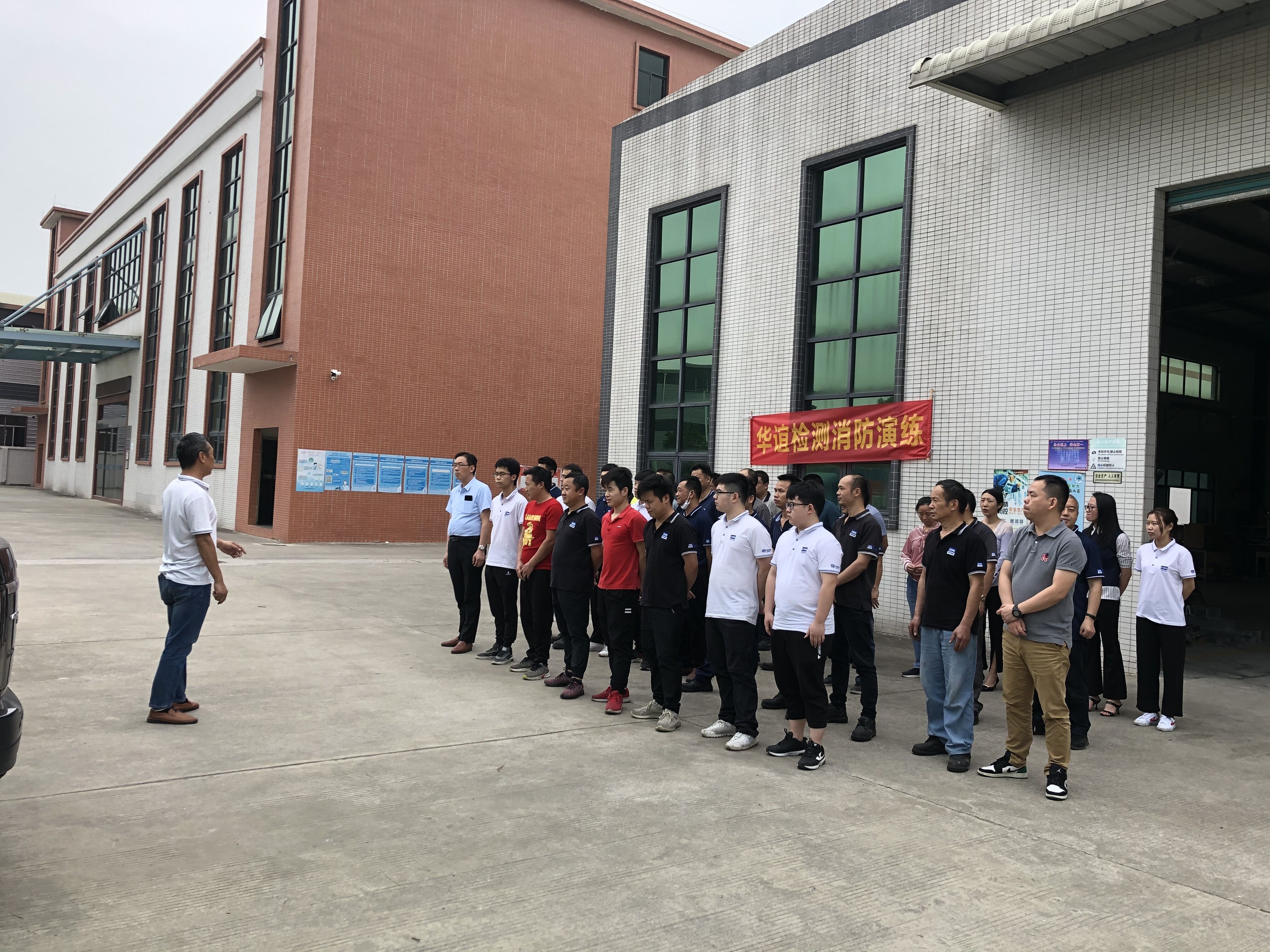 "关注消防安全,人人有责"华谊检测消防演练。